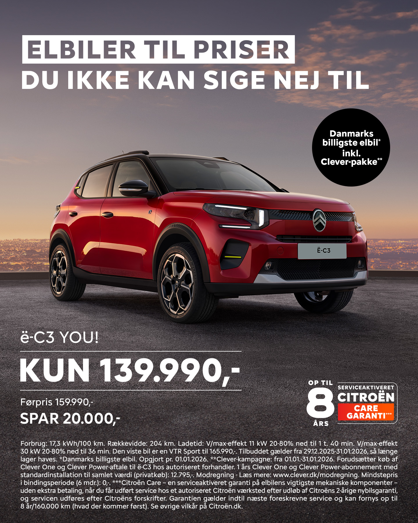 Citroën ë-C3 DANMARKS BILLIGSTE ELBIL