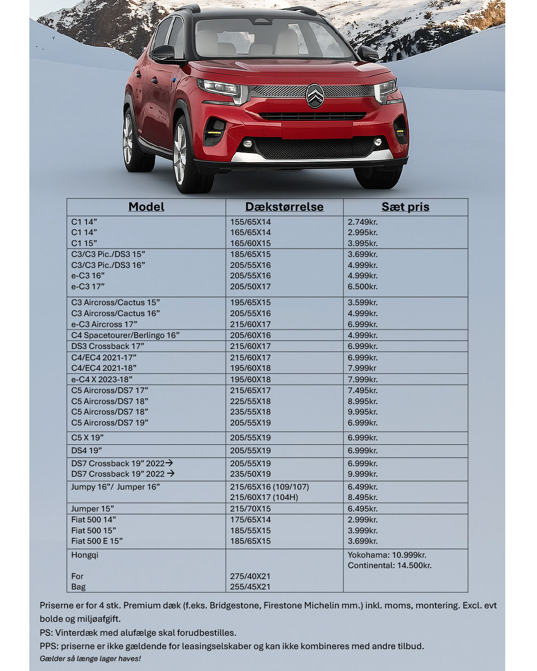 Tid til vinterdæk, se vores attraktive priser på dæk og fælge her.